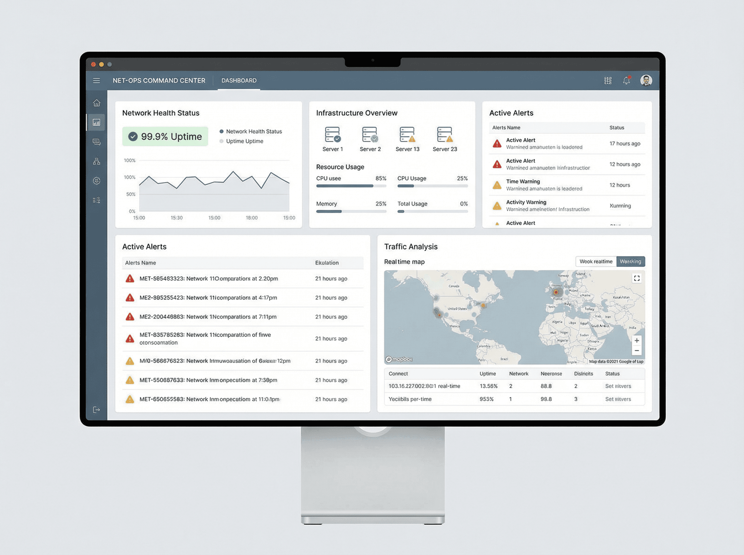 Diseñamos y operamos sistemas de monitoreo a la medida, con alertas inteligentes y dashboards gráficos que entregan visibilidad real del estado de la red. Aseguramos continuidad operativa, control del tráfico y detección temprana de incidentes en entornos críticos y de alta demanda.